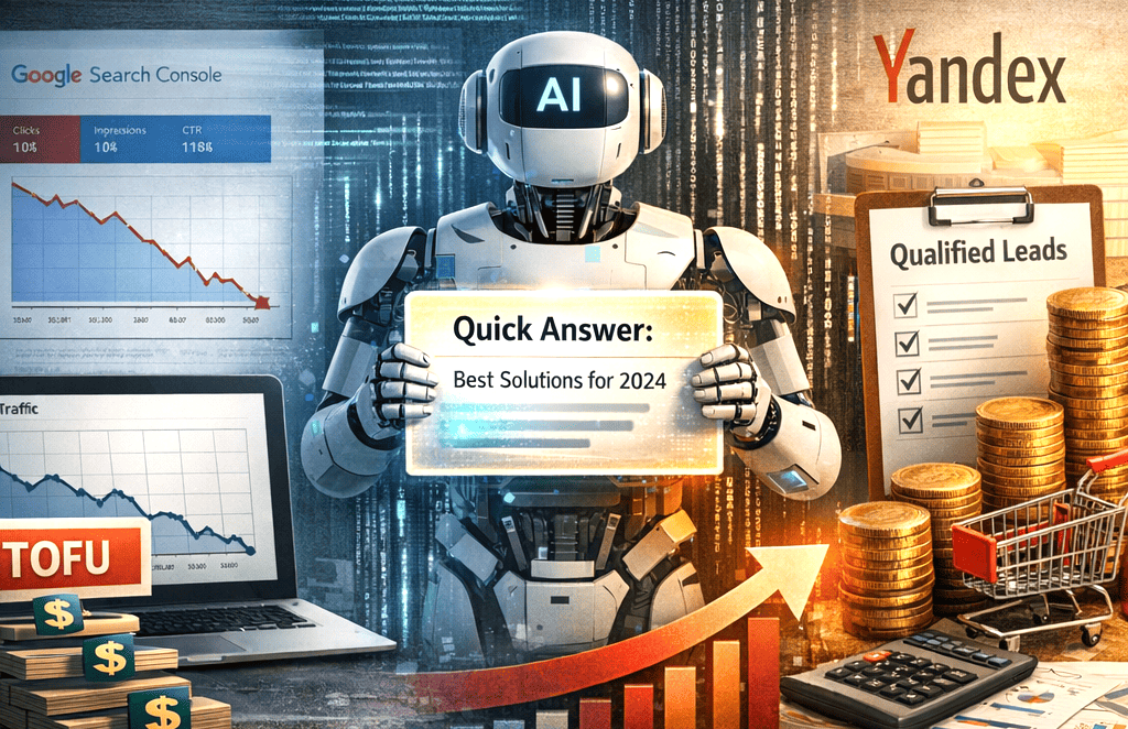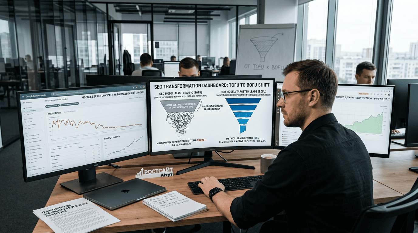 Столкнувшись с падением кликабельности (CTR) на информационных запросах, разумно пересмотреть распределение ресурсов. Практика показывает: пока статьи-словари теряют охваты, страницы, нацеленные на завершение сделки ($BOFU$), удерживают позиции и генерируют целевые лиды.